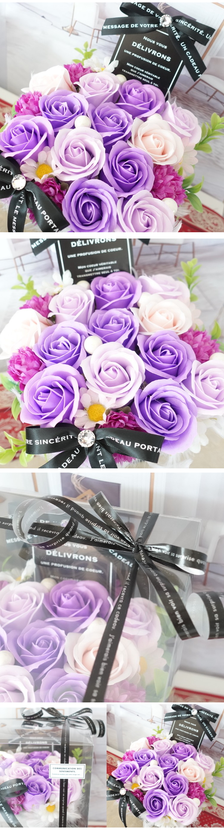 当店のソープフラワーは入浴剤や石鹸としてお使いいただけません為、観賞用としてお楽しみくださいませ。