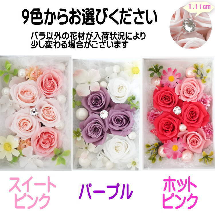 プリザーブドフラワーは生花に特殊加工し、高温多湿、直射日光を避けた状態で長年お楽しみいただけるお花です。