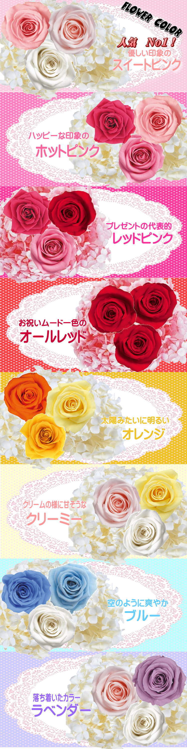プリザーブドフラワーは生花に特殊加工し、高温多湿、直射日光を避けた状態で長年お楽しみいただけるお花です。