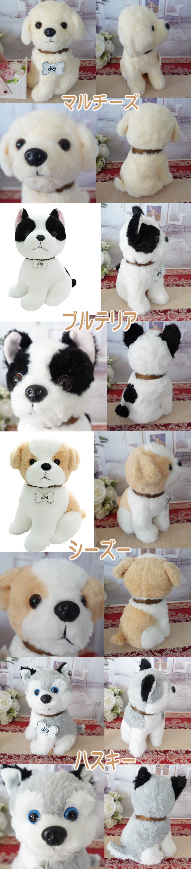 トイプードル チワワ シュナウザー マルチーズ ブルテリア シーズー ハスキー 可愛いぬいぐるみの子達のお顔を整えて少しでも可愛らしく見えるようにラッピングいたします。