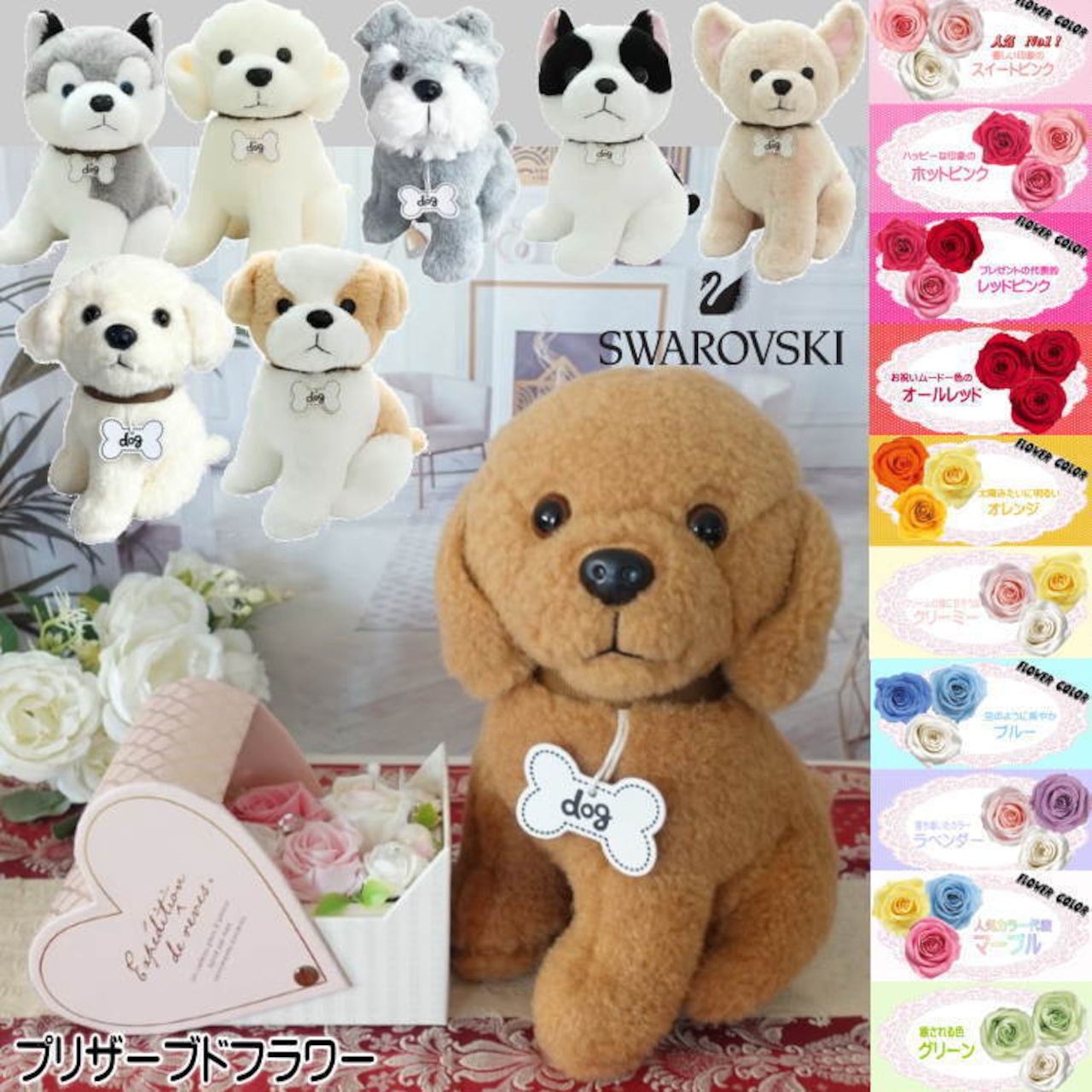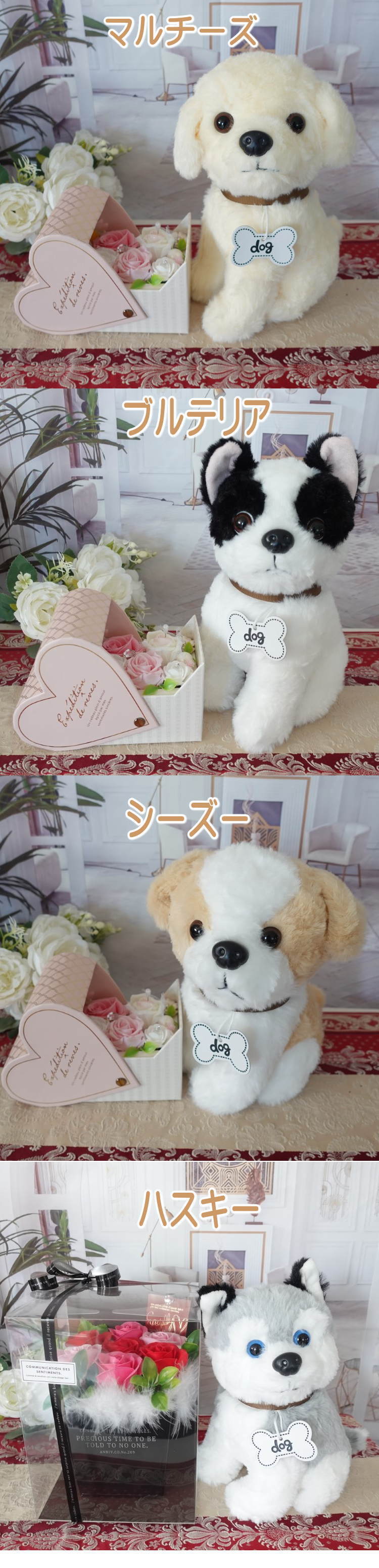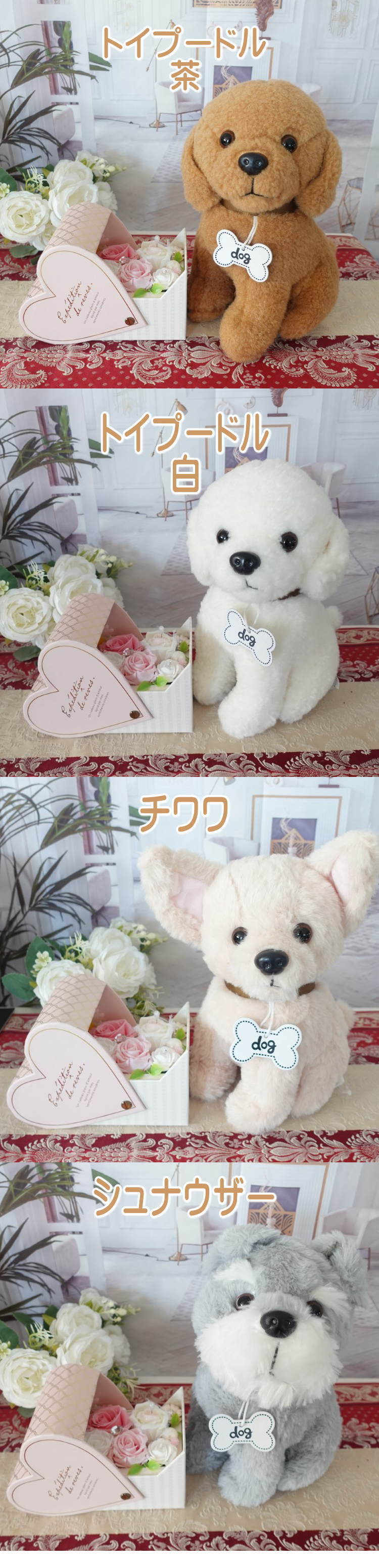 トイプードル チワワ シュナウザー マルチーズ ブルテリア シーズー ハスキー 犬 ぬいぐるみ 花束 花 フラワーアレンジメント 誕生日 結婚記念日 結婚祝い 入籍祝い プリザーブドフラワー プレゼント ギフト プロポーズ リングピロー リングクッション 指輪置き 指輪 リング | Chopin Design